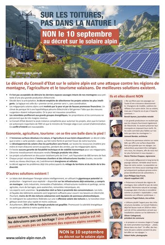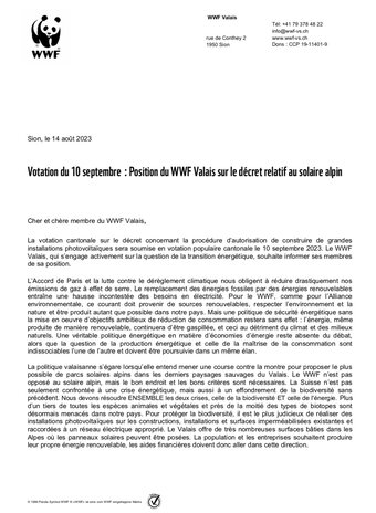 - Communiqué de presse du 8.2.2023 : Le WWF Valais voit d’un très mauvais œil l’installation de grands parcs solaires dans les surfaces vierges des Alpes. Le projet de décret sur le solaire alpin qui sera discuté cette semaine au Grand Conseil se trompe de cible !