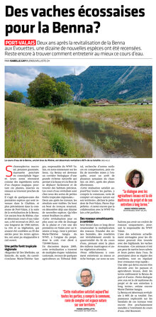 Une idée qui devra encore être discutée avec les paysans et agriculteurs locaux, dont les terres embrassent la Benna de part et d’autre. «Notre dialogue avec eux est la clé maîtresse du projet et de son entretien à long terme», estime encore Marie-Thérèse Sangra. La Benna est désormais revitalisée à 80% de sa totalité. Des panneaux explicatifs sur les bienfaits de ces travaux vont encore être prochainement installés à l’extrémité du cours d’eau, côté Bouveret.